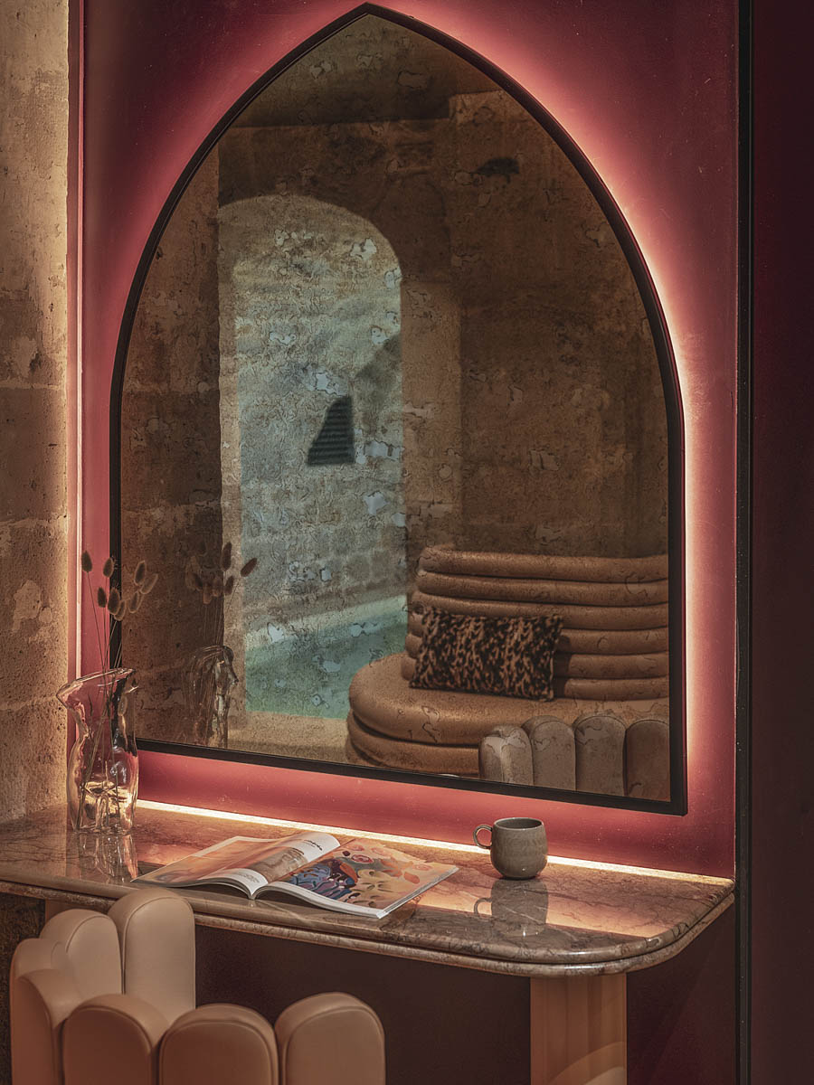 Deux bains vous attendent et sont à privatiser durant 1h30 (-30% si on a réservé une chambre): Vénus et Hédoné. Piscine, hammam, pour l’un jaccuzi et sauna pour l’autre. Ne manquez pas un tour aux toilettes des bains : un confessionnal, « con-fessez-vous » attend vos missives chargées de culpabilité. Ave Maria.