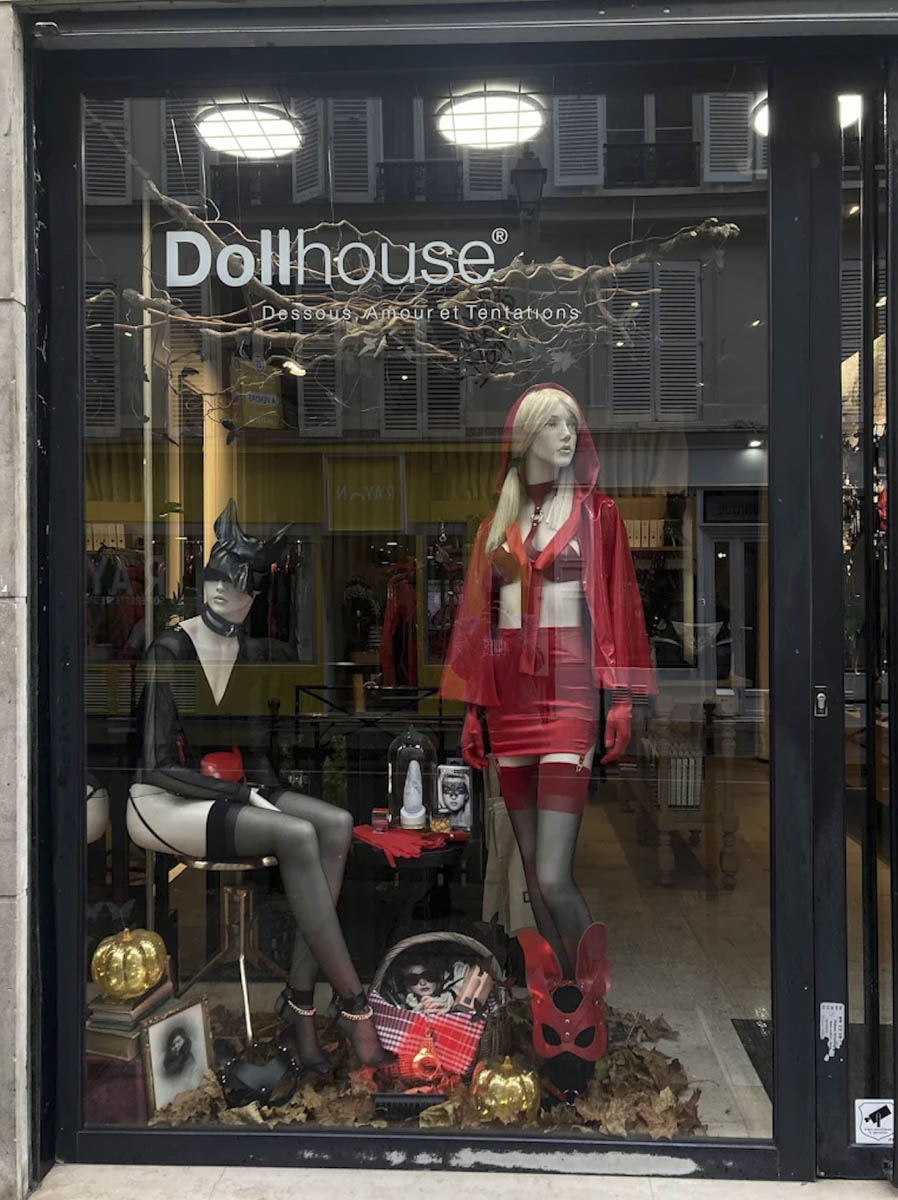 Au niveau de la lingerie, grand choix de « cat- suits », ces combinaisons en résille ou fine dentelle noire ouvertes ou non à l’entre-jambe. La légendaire marque Maison Close (les 36 et 38 sont en solde chez Doll House en ce moment) tient le haut du pavé, mais aussi les créations de la styliste anglo-japonaise E.l.f. Zhou London. Sans oublier DSTM, belle marque allemande de luxe. Pour parfaire le look maîtresse femme, foncez sur le burlesque avec les cache tétons Yokko Chérie.