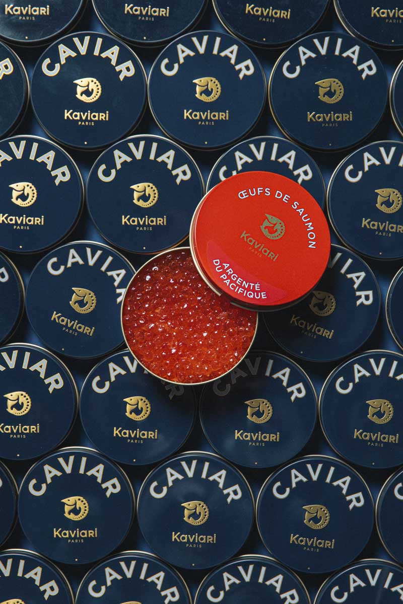 Plus « modeste », la Boîte Rouge Kaviari est une promesse de raffinement iodé à savourer sans retenue. Ses œufs de saumon subliment le palais d’une fraîcheur marine généreuse et addictive. Formats : 125 g (31 €) et 250 g (62,5 €).